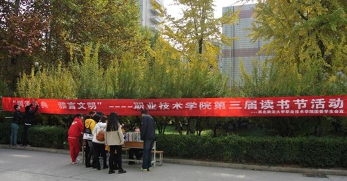 为了积极响应我校团委第三届读书节的工作安排,职业技术学院团委于2014年11月11日至12月5日,在雁塔校区开展了“润泽经典,雅言文明”读书节系列活动。本次活动的主旨是引导大学生树立远大理想,齐心共筑“中国梦”,进一步提高我院学生文化素养,促进优良学风、校风养成,培养“爱读书、会读书、读好书”的良好习惯。