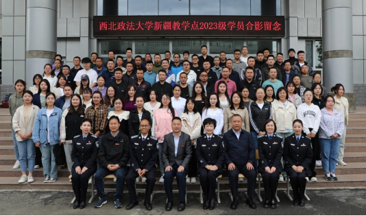 出席开学典礼的领导和2023级新学员合影留念。