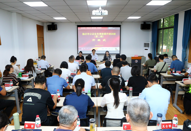 副院长、培训中心副主任、律师学院副院长蔡珺;临沂市司法局公共法律服务管理办公室主任刘洪涛及49名学员出席开班式。