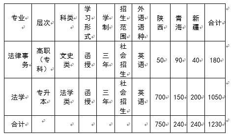 2010年西北政法大学成人高等教育招生分省计划表
